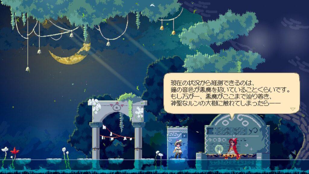 本作はmomodra3でも主人公を務めたモモが主人公。モモを操作して、黒き鐘を奪った者を探すため、悪魔を討伐しながら世界を探索していくメトロイドヴァニアです。