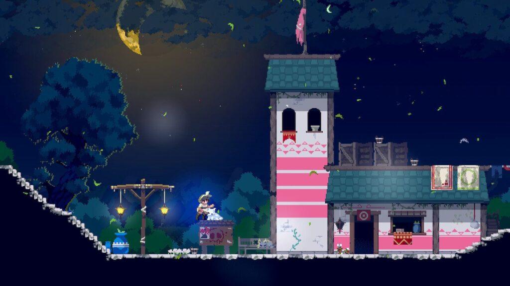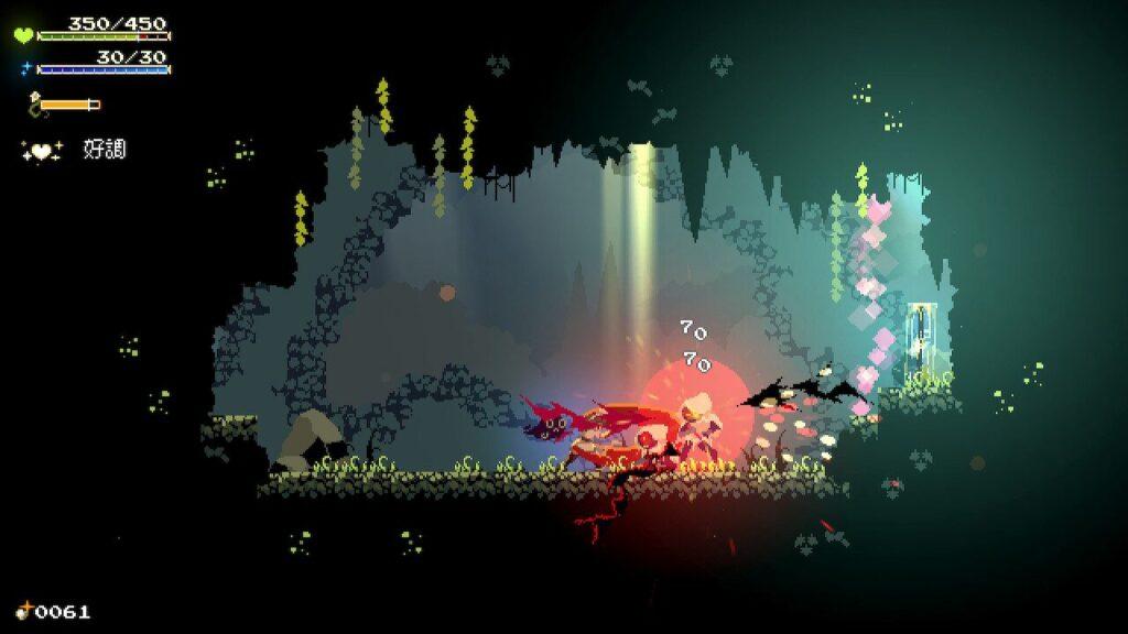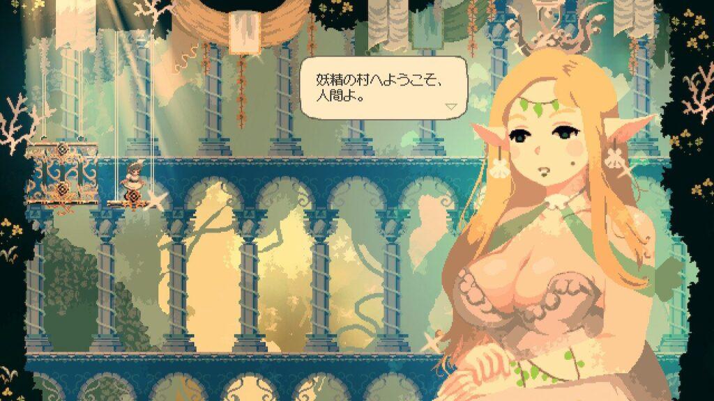 momodra月下も綺麗でしたが、本作はさらに綺麗です。全体的に以前の作品よりも引きの画面になったからかより全体が見渡せるようになり、ドットの細かさもよく分かります。